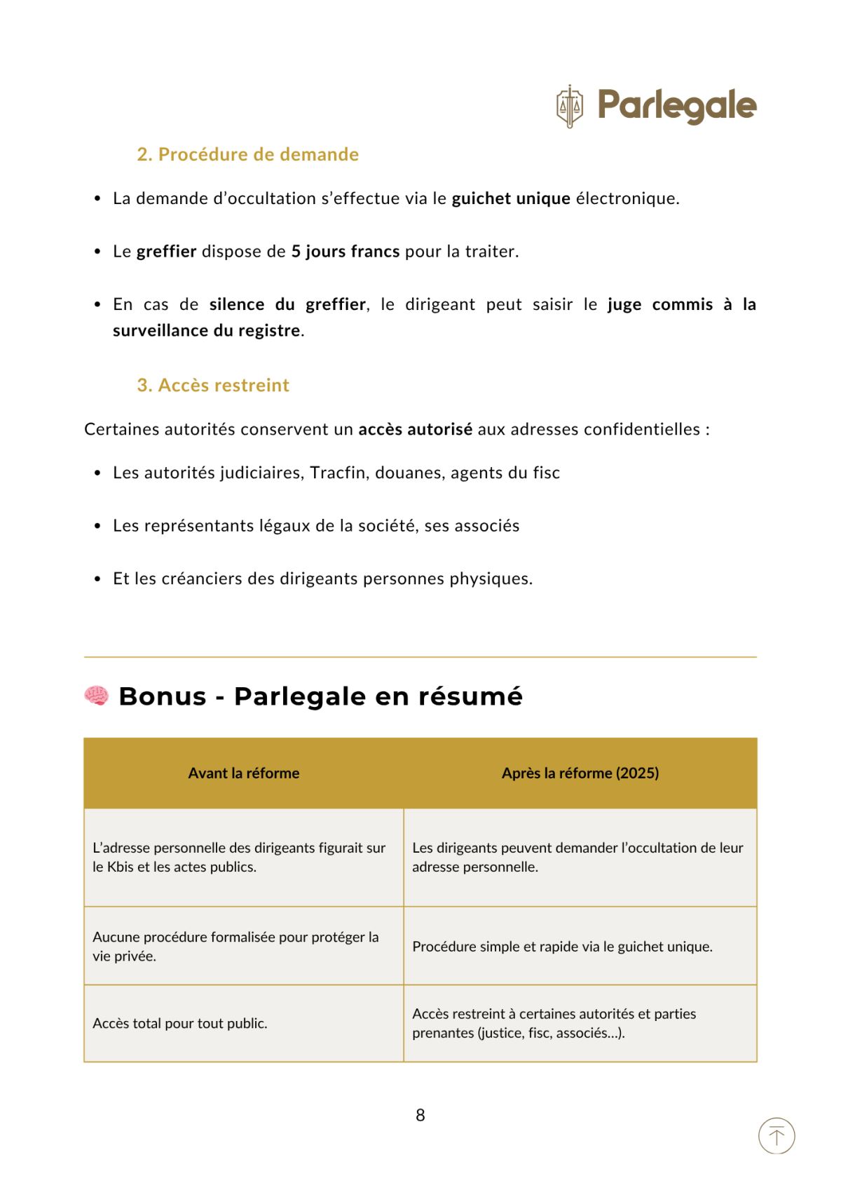 • et une synthèse BONUS 🧠 “Parlegale en résumé” pour retenir l’essentiel